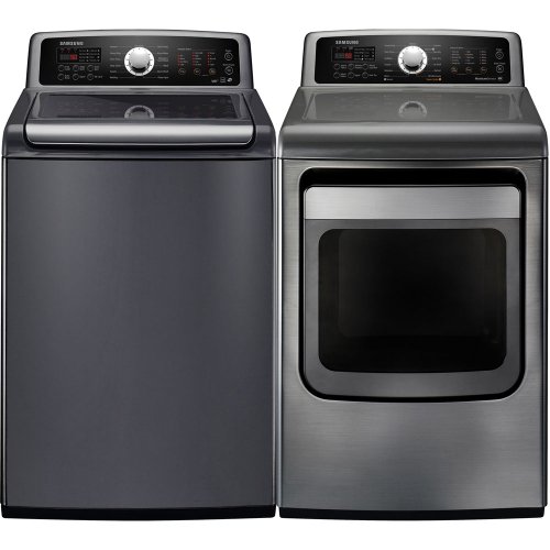 Searching for the best Samsung Stainless Platinum 4.8 Cu Ft Top Load Washer and 7.4 Steam GAS Dryer WA484DSHASU_DV484GTHASU; Congratulations! Check the specifications, features and feedback from customer feedback include price controls and information more satisfactory Samsung Stainless Platinum 4.8 Cu Ft Top Load Washer and 7.4 Steam GAS Dryer WA484DSHASU_DV484GTHASU product reviews! Energy Star rated CEE Tier 3: Most Efficient 4.8 cu. ft. top load washer Vibration Reduction Technology for quieter washing PureCycle cleaning setting safely cleans interior drum Chrome deco tinted glass door lid Diamond Drum design protects clothing Red LED display 4 temperature, 5 spin, and 5 soil settings 13 preset cycles with 8 washing options The Samsung DV484GTHASU 7.4 Cu. Ft. GAS Dryer in stainless platinum features a front window that allows you to easily check the status of your laundry without pausing the drying cycle. The dryer comes with Samsung's Steam Drying technology, including Steam Refresh, which freshens clothes and removes odors, and Steam Wrinkle Away, which relax wrinkles before they set in to reduce the need for ironing. Plus, this dryer is NSF-certified, guaranteeing that it eliminates 99.9% of household bacteria from laundry. 7.4 cu. ft. GAS dryer handles a king-size comforter Black display panel with red LED display Steam refresh removes odors and freshens clothing Steam Wrinkle Away relax wrinkles to reduce ironing Peace of mind with NSF-certified sanitization cycle 13 preset dry cycles with 7 options 5 dry levels, 5 temperature settings and 5 timed settings Lint filter indicator Reversible see-through door Dryer drum light Drying rack