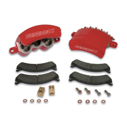 SSBC A187-4 Quick Change Aluminum Tri-Power HD 3-Piston Front Caliper Upgrade Kit for '99-06 GM 3/4 1-Ton?This product is a quick change Tri-Power HD 3-piston calipers and high performance pads. Must be used with stock size rotors. All hardware included. Bolts to stock spindles. Calipers come with clear anodize finish. Reuses stock cradle brackets.