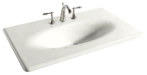 KOHLER K-3051-8-0 Iron/Impressions 37-Inch Cast Iron One-Piece Surface and Integrated Lavatory, White?K-3051-8-0 Finish: White, Faucet Holes: 8" Features: -Available with several faucet drillings.-Cast iron one-piece surface.-Delivering uncompromising durability.-KOHLER Cast Iron.-Seamless, one-piece design allows for easy cleaning.-Single-hole faucet drilling. Options: -Available in several finishes. Dimensions: -Overall Dimensions: 37-5/8''L x 22-1/4''W.