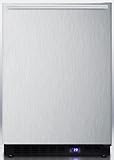 | ✚✚✚ Summit Stainless Steel Upright Built In Freezer SCFF51OSXCSSHHIM Summit Stainless Steel Upright Built In Freezer SCFF51OSXCSSHHIM. Weatherproof design rated safe for outdoor operation. No-frost convenience eliminates the need to manually defrost the unit. Make the best use of space by installing your freezer under the counter and flush with other cabinets. Allows the freezer to be used as a freestanding model. Electronic controls offer easy and intuitive temperature management. Produces a steady supply of ice for added entertaining convenience. Elegant lighting with an on/off switch located on the control panel. User reversible door swing for added placement flexibility. Rearrange your freezer space to accommodate all shapes and sizes or remove shelves for a simple clean-up. Environmentally friendly design without ozone-damaging chemicals. Capacity: 4.9 Cu. Ft. Defrost Type: Frost-Free. Reversible Door: Yes. Door Swing: Right Hinge. Shelf Quantity: 3. Adjustable Shelf: Yes. Factory Installed Ice Maker: Yes. Light: Yes. Fan Type: Interior and Exterior. Freon Type: R134a. Freon Oz.: 2.8 Oz. Low Side PSI: 106.0. High Side PSI: 270.0. US Electrical Safety: ETL. Canadian Electrical Safety: ETL-C. Voltage: 115 V AC. Frequency: 60 Hz. Amps: 2 Amps. Energy Usage/Year: 485 kWh/Year. Parts/Labor Warranty: 1 Year. Compressor Warranty: 5 Years. Overall Width: 23 5/8. Overall Depth: 25 7/20. Overall Depth without Handle: 23 1/2. Overall Depth with Door 90*: 45 5/8. Overall Height: 34. Weight: 88.0 Lbs. Shipping Weight: 98.0 Lbs. Outdoor Frost-Free All-Freezer SUMMIT's SCFF51OS Series of frost-free all-freezers provides a variety of choices to complete any outdoor or indoor kitchen space. These 24 wide all-freezers are front-breathing for built-in installation but also include fully featured black or stainless steel wrapped cabinets for freestanding use. The weatherproof design includes an integrated GFCI cord and sealed back for added protection against the elements. Full frost-free operation ensures low maintenance use, with a front-located