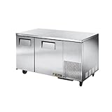 | ✚✚✚ True Heavy Duty 4-shelf 15.5 Cu Ft Deep Undercounter Freezer - TUC-60-32F-HD True Heavy Duty 4-Shelf 15.5 Cu Ft Deep Undercounter FreezerTrue undercounter freezers are constructed of 20 gauge stainless steel exterior that resists dents and scratches. The undercounter design saves space in small kitchens and provides a 36" work surface. The environmentally friendly refrigeration system holds temperatures at -10°F, perfect for storing frozen foods safely. The swing doors have a 90° stay open feature for easy access. Benefits and Features:20 gauge stainless steel exterior 16 gauge stainless steel interior Ecomate insulation Zero ozone depletion (ODP), zero global warming potential (GWP) CFC free 404A refrigerant Refrigeration system holds temperatures at -10°F Automatic defrost system Self-closing doors with 90° stay open feature Recessed handles Self-contained system Additional Information:2 doors, 4 shelves 5" casters Width: 60-1/4" Depth: 32-1/4" Height: 29-3/4" Ship Weight: 385 lbs Capacity: 15.5 cubic ft 1/2 HP, 10.4 Amps Unit is pre-wired for 115/60/1 phase, 5-15P plug 5-Year condenser warranty 3-Year parts/labor warranty Made in the USA NSF, CE, and UL Listed Model #: TUC-60-32F-HD 485075
