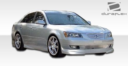 Features2006-2008 Hyundia Sonata Duraflex Racer Kit - Includes Racer Front Lip (102276), Racer Rear Lip (102278), and Racer Sideskirts (102277).High Quality 6 oz. Fiberglass / Unpainted Black FinishGeneral Hardware Kit (Non-OEM) / Reduced Damage Rate Up To 75%General Instruction GuideWe require installation by a professional body shop with experience in aftermarket parts. 2006-2008 Hyundia Sonata Duraflex Racer Kit - Includes Racer Front Lip (102276), Racer Rear Lip (102278), and Racer Sideskirts (102277).?