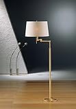 Holtkotter 2541 BB SWDL Two Light Swing Arm Floor Lamp, Brushed Brass Finish with Satin White with Diamond Logo ShadeThe adjustable shaded floor lamp is equipped with a low-high-off switch. The fabric shades are hand-washable.