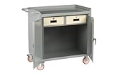 | ✚✚✚ Little Giant MC2D2436-2DRTL Steel Mobile Bench Cabinet with 2 Drawers and Doors, Gray, 1200 lbs Load Capacity, 38" Height x 24" Width x 36" Length Mobile bench cabinet with 2 drawers and doors. 12 Gauge shelves measure 36" width by 24" depth and are enclosed on 3 sides with 14 gauge steel. Top shelf has lip on three sides, with a flush front edge. Bottom shelf has a 1-1/2" lip front edge. 36" top shelf height. Non-marking 5" polyurethane casters, 2 rigid and 2 swivel with total lock brakes. 1200 lbs Capacity. Drawer measures 17" length by 13" width by 4-1/2" height. Measures 38" height by 24" width by 36" length.
