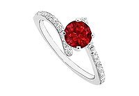 Ruby and Diamond Engagement Ring : 14K White Gold - 0.50 CT TGW Size 7